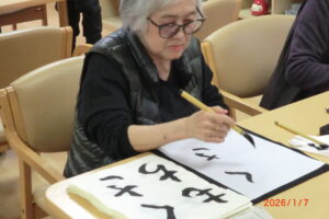 書初めは1月2日にやるものですが、1月2日は初詣だったので七草がゆの日に書初めをしました。