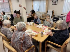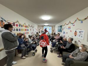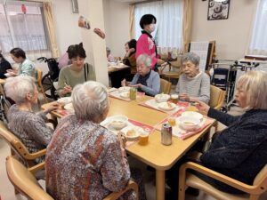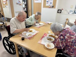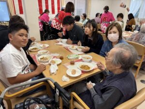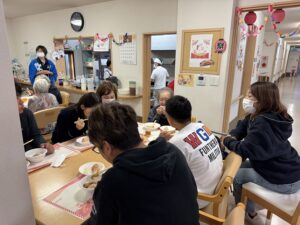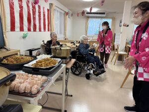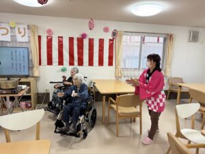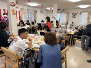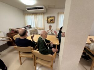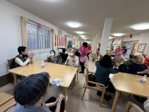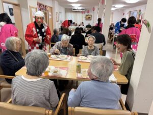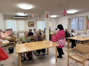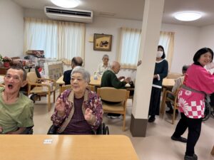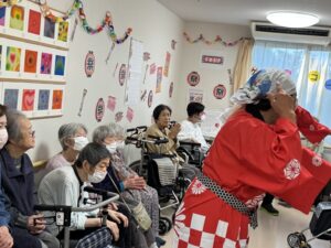 スタッフがはっぴを準備してくれました。安来節もみんな楽しそうに踊ってくれています。腰を悪くされないか、ちょっと心配。