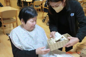 お菓子だけだと寂しいのでティッシュケースもお渡ししました。