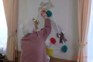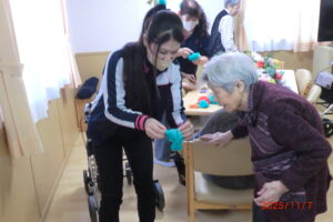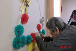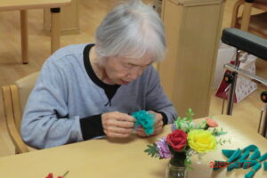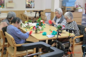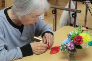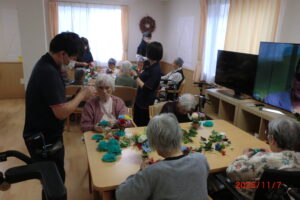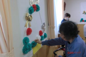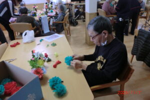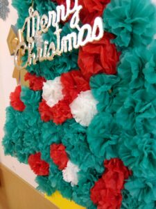 みんなでフラワーペーパーでクリスマスツリーを作ってみました。