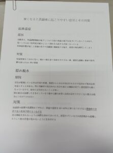 今回は男性スタッフが資料を作成してくれました。夏もエアコンの使い方については気にかけないといけないのですが、冬も気にかけておかないといけないことがあるというおはなしをまとめてくれていました。