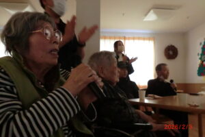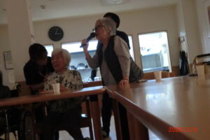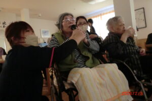 さて、恒例のカラオケ大会です。「聞くだけでも聞きたい」「私は歌わない」と言いながら懐かしい曲がかかると口ずさんでしまいますね。