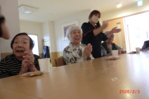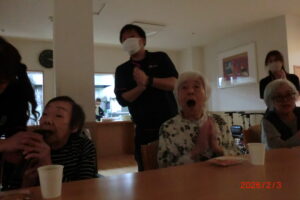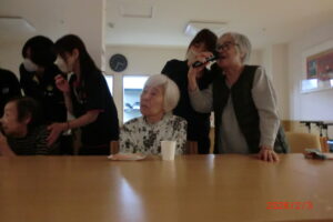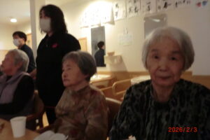 実はおやつも出るので、そっちがお目当ての方もいます(*^^*) カラオケ喫茶風にしようと食堂を暗くしてムーディーにして歌う。